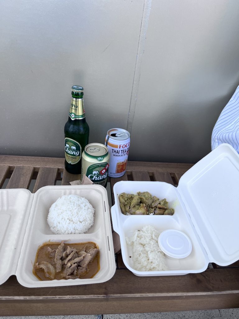 今回はタイ館スペイン館に入り、予約していた空飛ぶクルマにも乗車し記念撮影をしていただきました!