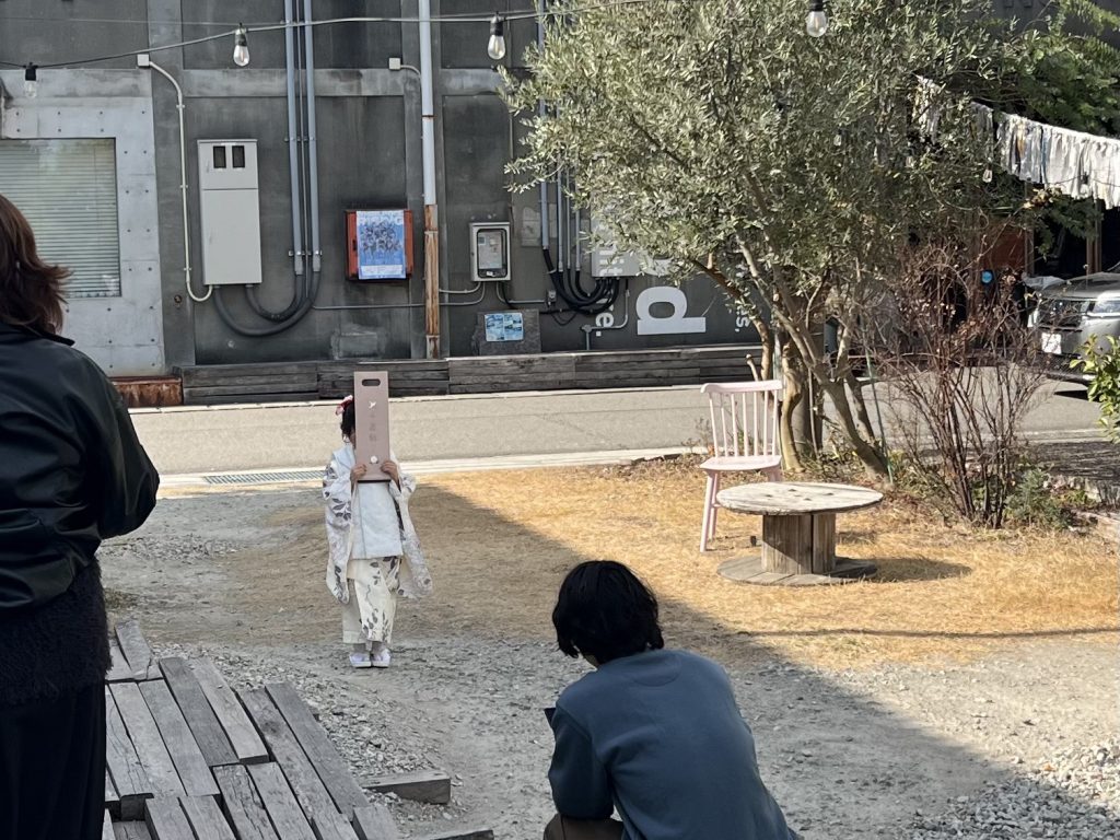 道中の社内にて「今日はかわいい服着てお写真撮ろうね~」というと