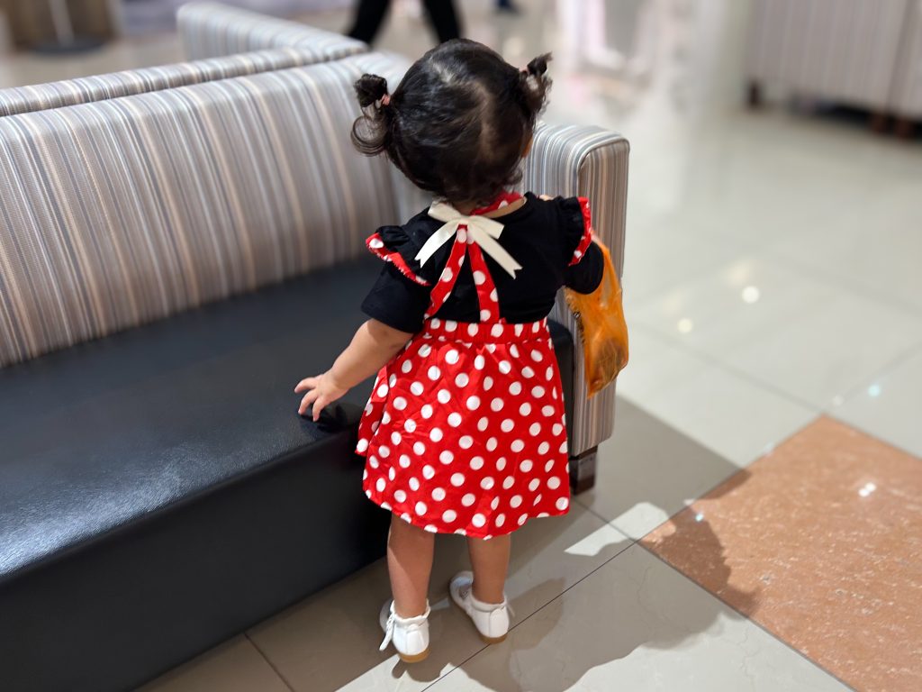 娘の衣装テーマはミニーちゃん🎀(リボンのカチューシャも用意してたのですが、頑なに拒否され泣く泣く断念、、)