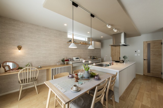 ケントホームズのモデルハウスでは、リビング学習を想定した空間構成や、日常の動きを踏まえた設計の工夫を確認できます。