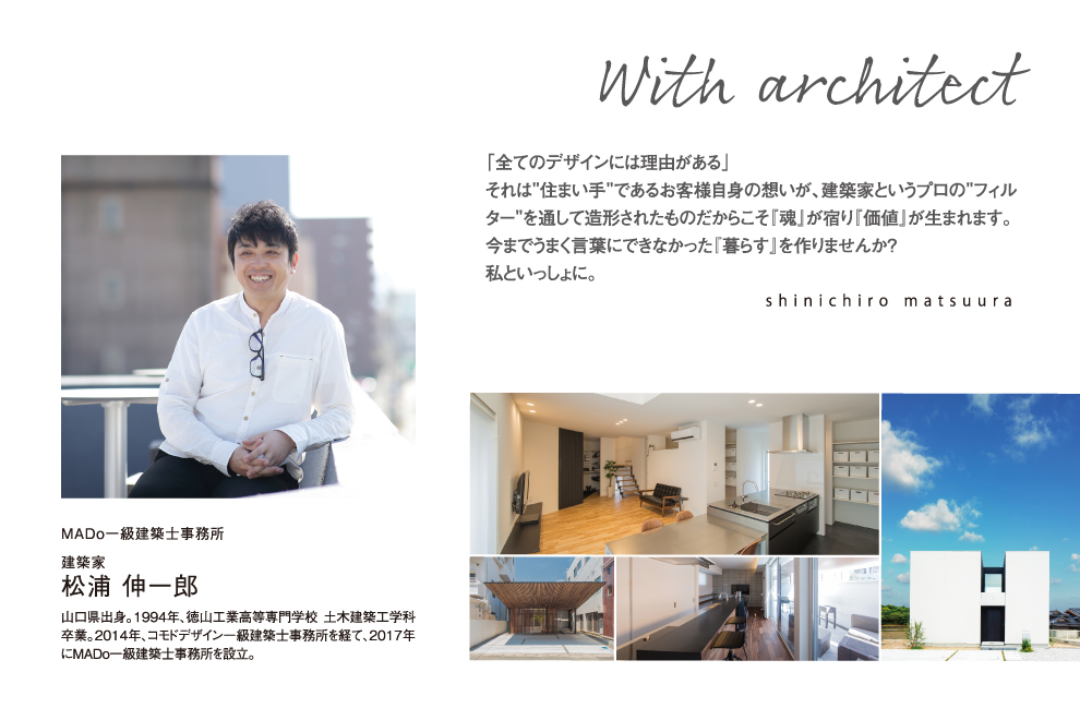 | 備考 | 吹付断熱アクアフォームで高気密高断熱、一種換気を採用することで高換気を実現 建築家と住宅会社がタッグを組むことで、デザイン性、構造が共存した家になります。 |