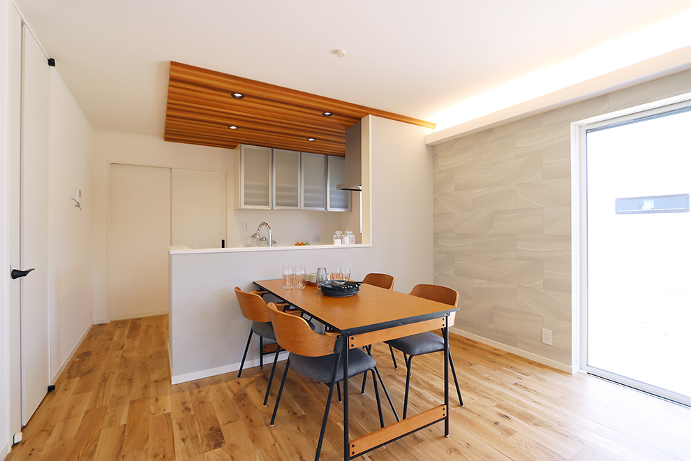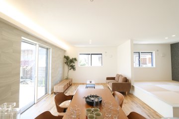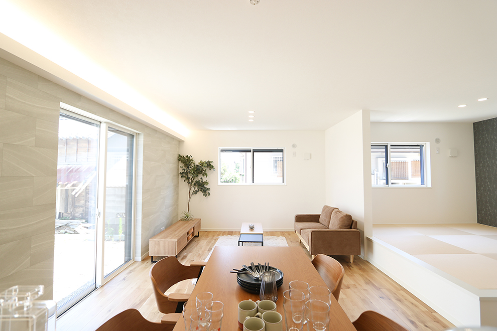 ご家族が集まるリビングは和室と一体となりゆったりとした空間になっております。