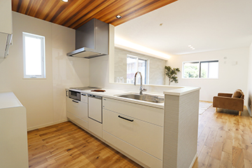 キッチンは食器洗い乾燥機やカップボード設置で毎日の家事が楽になります。SNSで人気のグースネックの水栓が嬉しいですね。