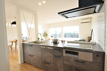 ダークトーンのカラーを採用し明るいLDKを引き締めています。 -