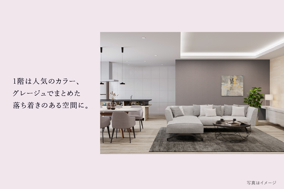 LDKに併設した和室やコミュニケーションステージなど一つの空間に様々なスペースを設けているため家族の繋がりが感じられるお家となっています。