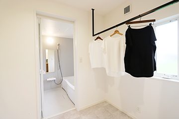 今人気のランドリールームを完備。雨の日の洗濯に嬉しい仕様です。洗面コーナーを別の場所に設けているから、家族のお風呂時間に身支度がかぶっても安心!