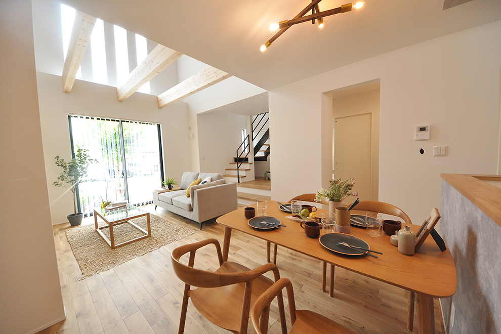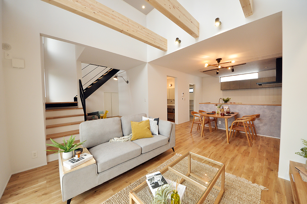 人気のヌックスペースには大開口の吹き抜け、アイアン手摺などデザイン性豊かに仕上げています。周辺には北島中央公園やコープ北島など過ごしやすい環境が整っています。