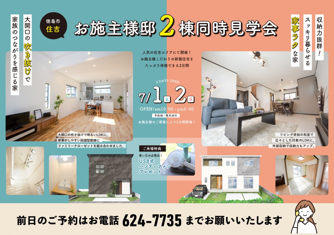 【徳島市住吉】7月 2棟同時 お施主様邸見学会開催!