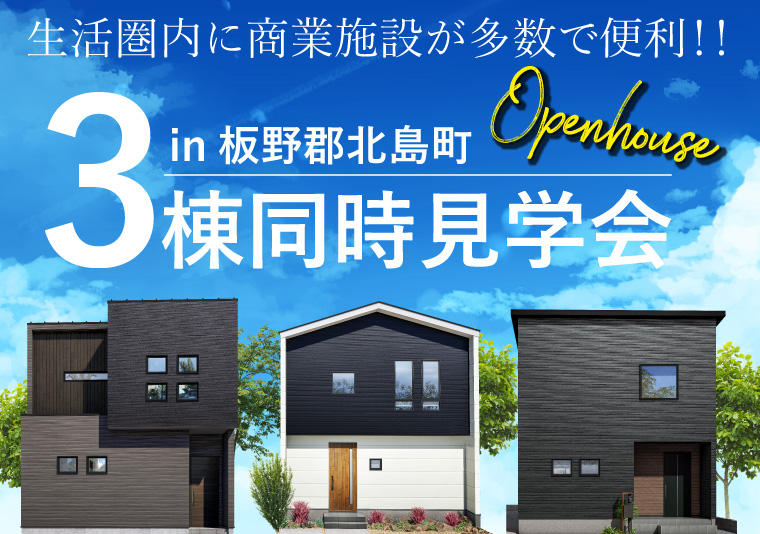 今回開催する3棟のお家はどれも個性豊かでモダンなお家です。
