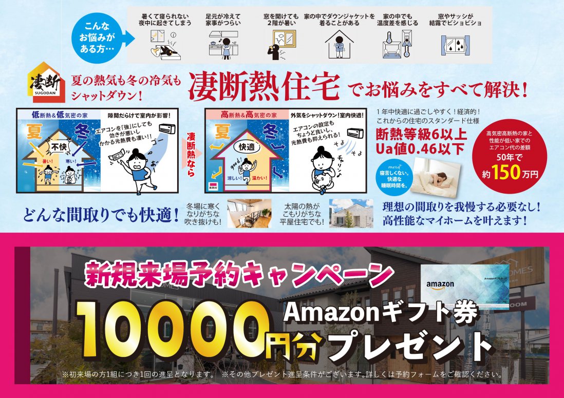 ※初回来場時に特典5000円分進呈。後日「相談会関連のイベント」に続けて予約をくださった方に追加で5000円進呈します。