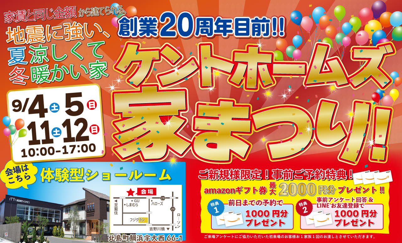 【北島店】9/4~9/5、9/11~9/12 ケントホームズ家まつり!