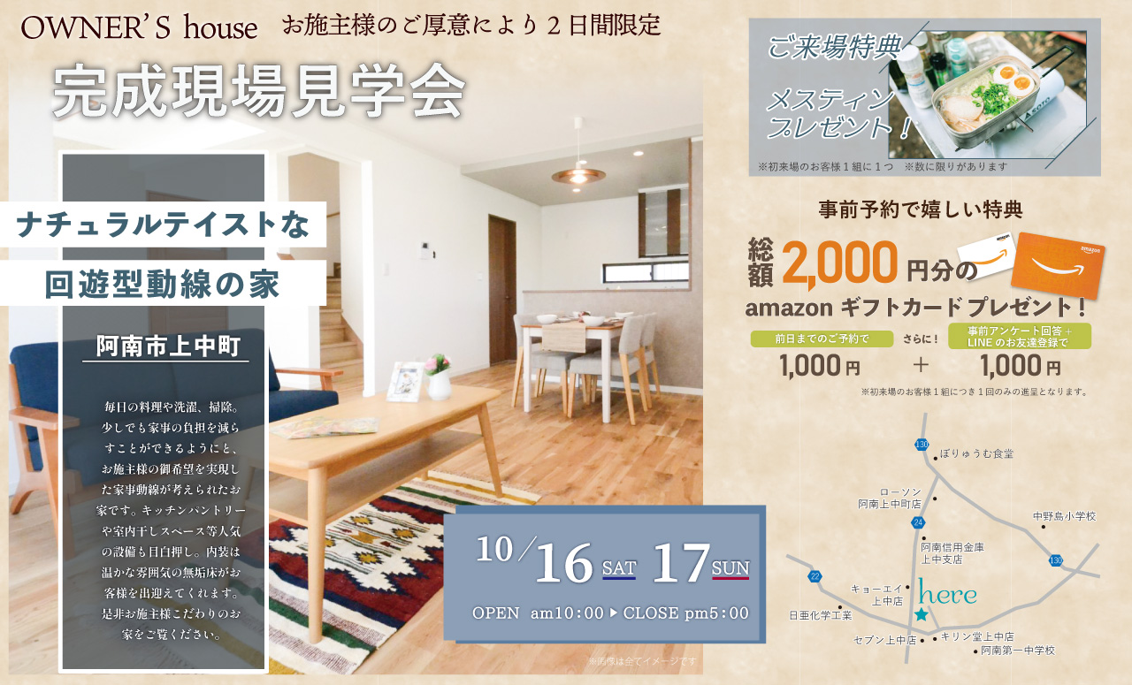 【阿南市】10/16~10/17 お施主様邸完成現場見学会開催!