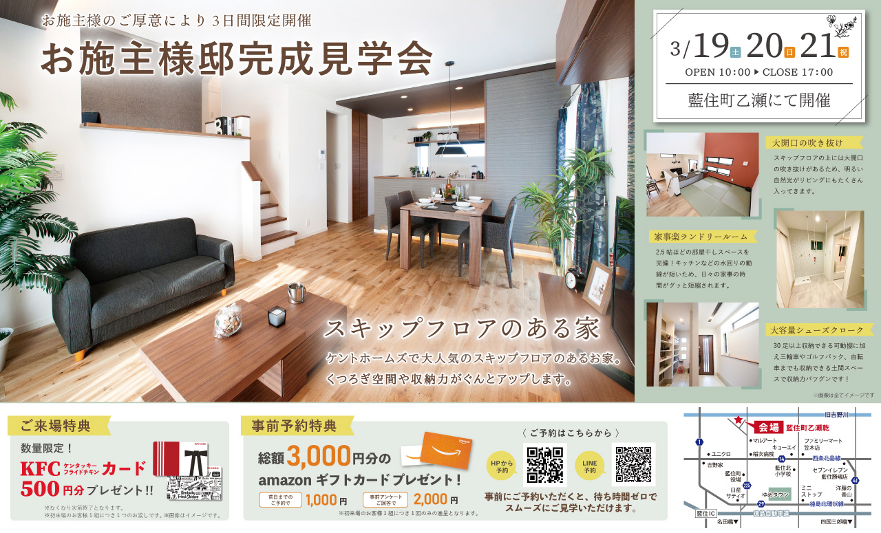 【藍住町】3/19~21 お施主様邸見学会開催!