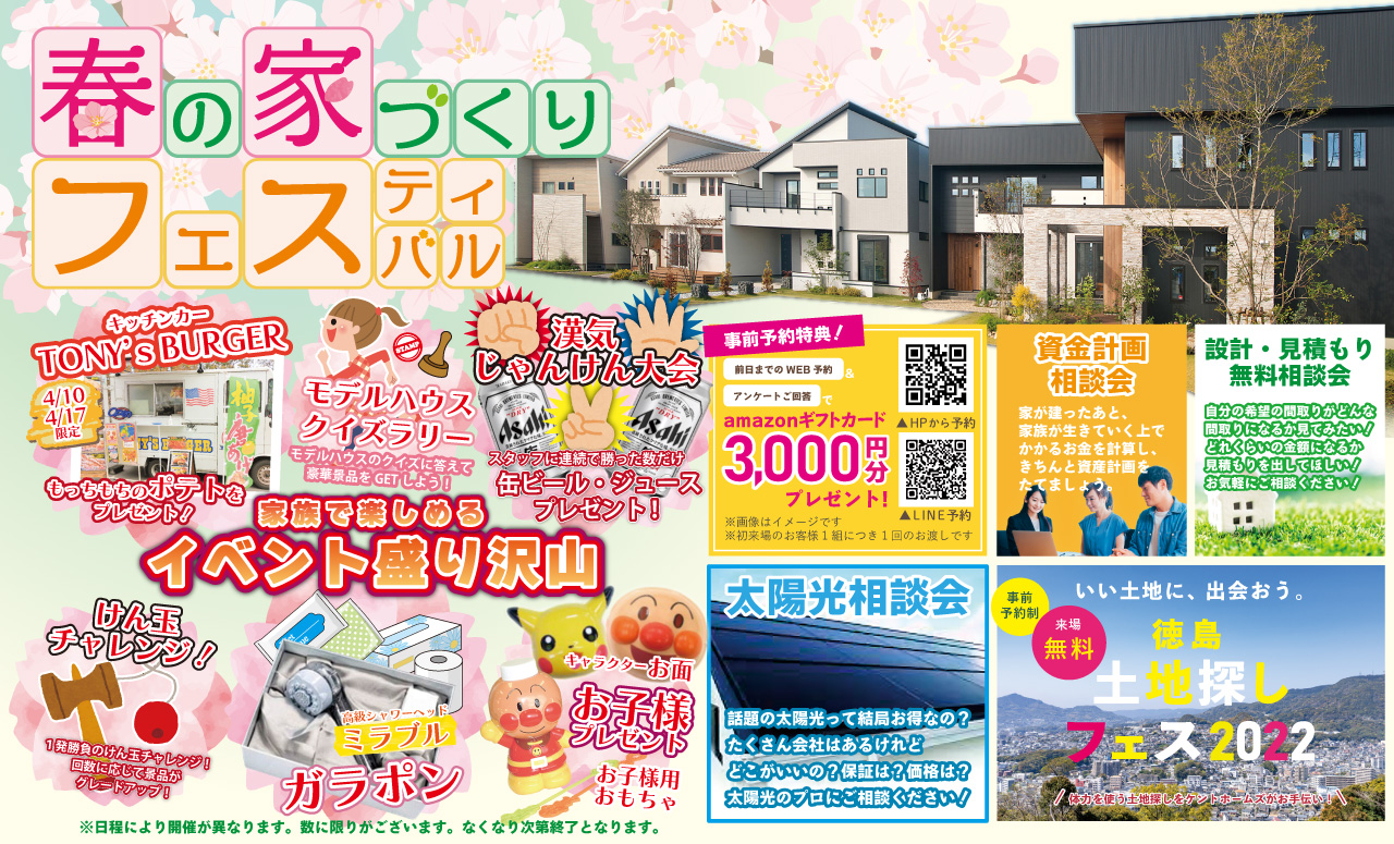 【徳島南店】4/9~10、16~17、23~24 春の家づくりフェスティバル