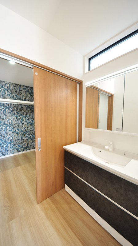 家事動線を意識して浴室と洗面室の間にファミリークロークが。