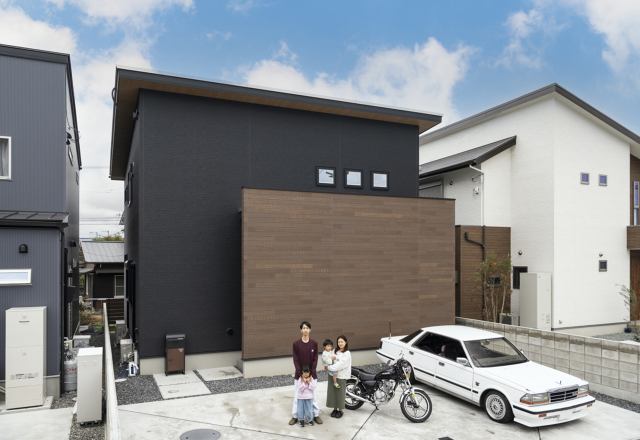 シンプルさの中にも、軒天を木目にすることでアクセントをつけた外観も素敵です。
