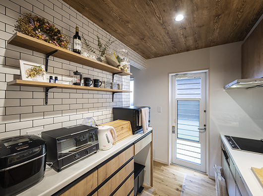 あとは主人が木材を扱う仕事をしていますので、一部の施工を主人にDIYしてもらったのがこだわりのひとつです。もちろん基本はケントホームズさんに建ててもらうんですけど、主人の手もちょっと加えることで、自分たちのオリジナリティを出したかったんですよ。実際にキッチン背面の棚などはDIYで作りました。