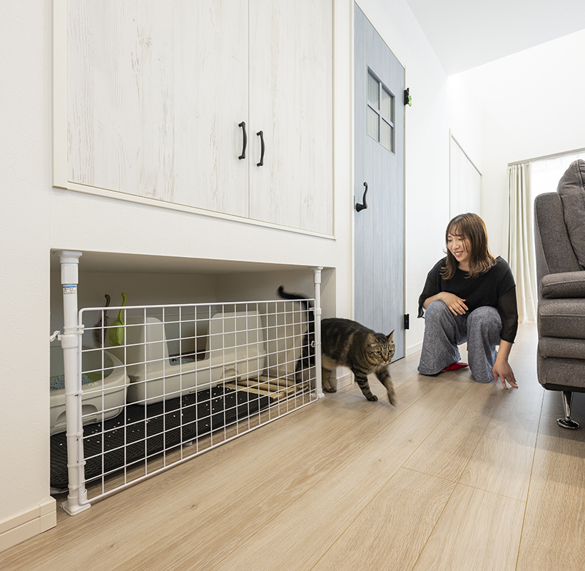 猫ちゃんのトイレのスペースは1階・2階に完備しているところもポイントです。