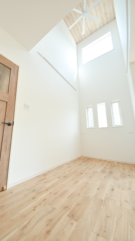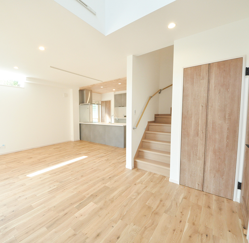 リビングの吹抜けは陽の光が入って気持ちがいいです