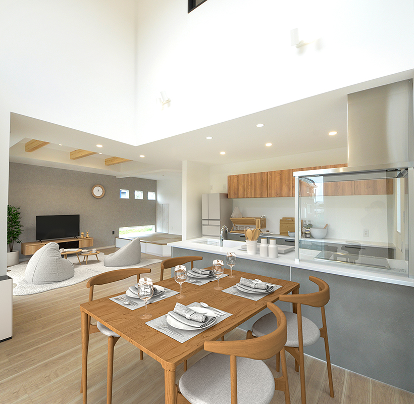 梁見せ天井でLDKの雰囲気をワンランクアップ