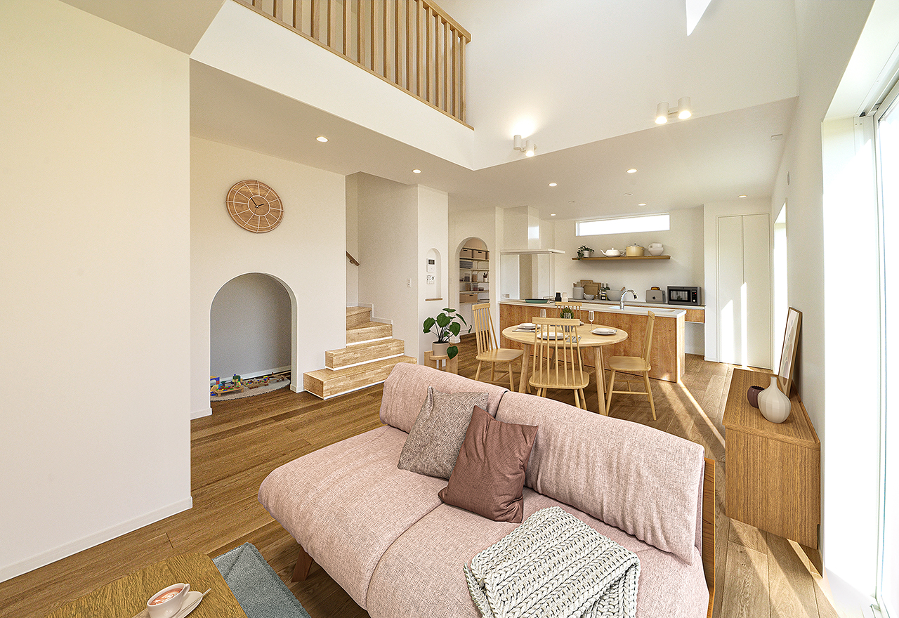 ところどころにアールの垂れ壁を使用することで可愛らしさを演出
