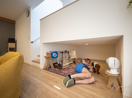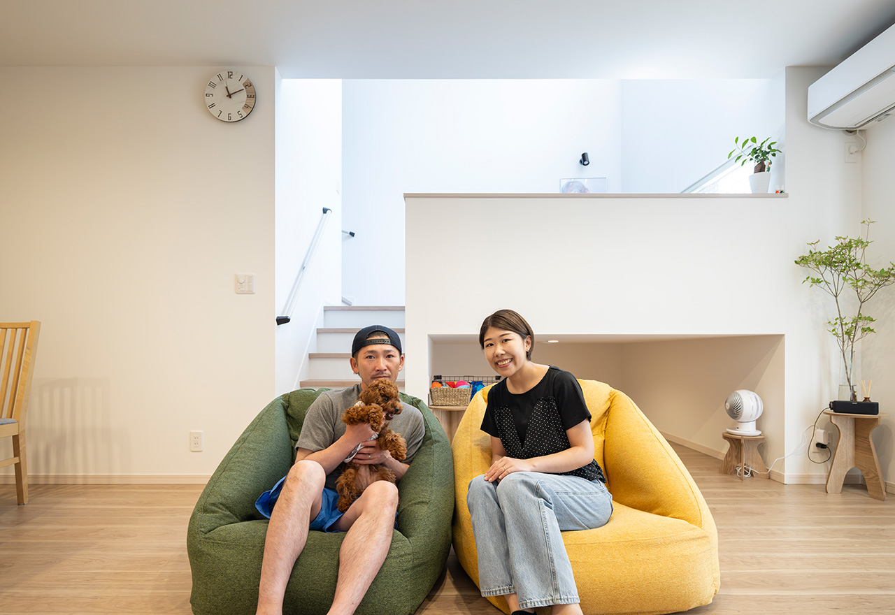 また、『ワンちゃんを飼う』という結婚したときからの夫婦の夢があったので、中2階の1階部分をワンちゃんのお部屋にしました。その希望をケントホームズの担当の方に伝えると、消臭効果のあるナノイー換気扇を提案してくれて。新しいお家に引っ越してから実際にワンちゃんを飼っていますが、臭いもなく快適に過ごすことができています。 -