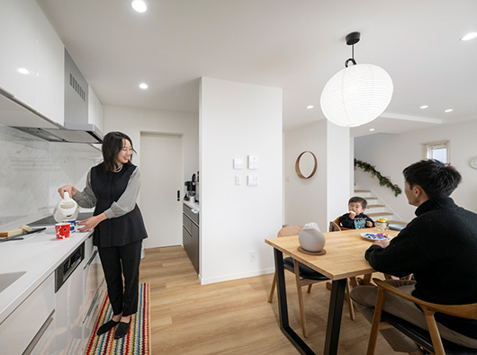 また、回遊動線の間取りになっているので、子どもが走り回って楽しそうにしています。大人も子どもも一緒に走り回って遊べるようになったので、それも良かったかなと思います。 -