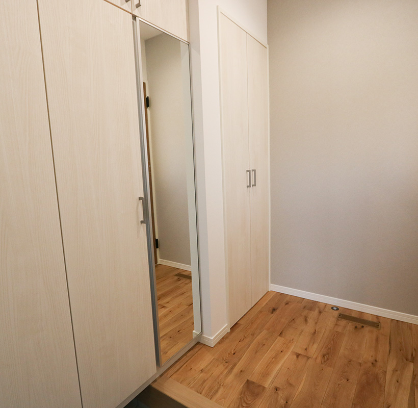 大きな姿見やたくさんの収納力で外出が楽しくなる玄関