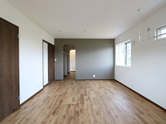 生活スタイルに合わせて2部屋に分けられる12帖の洋室