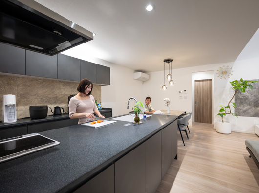 また、キッチンの縦幅を一般的なものよりかなり広くして料理をしやすくしたのと、キッチン背面の収納を多めにとってもらったのもこだわりポイントです。