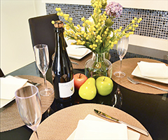 ドアやテレビボードは光沢のある黒色を採用し高級感のあるデザインに仕上がりました。