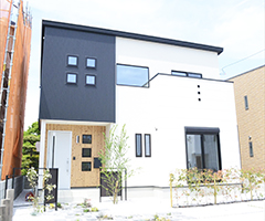素材の違うサイディングを掛け合わせることで、無二の外観に仕上がりました。 -