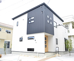外観は金属サイディングをアクセントに、モダンな雰囲気の外観に仕上がっています。 -
