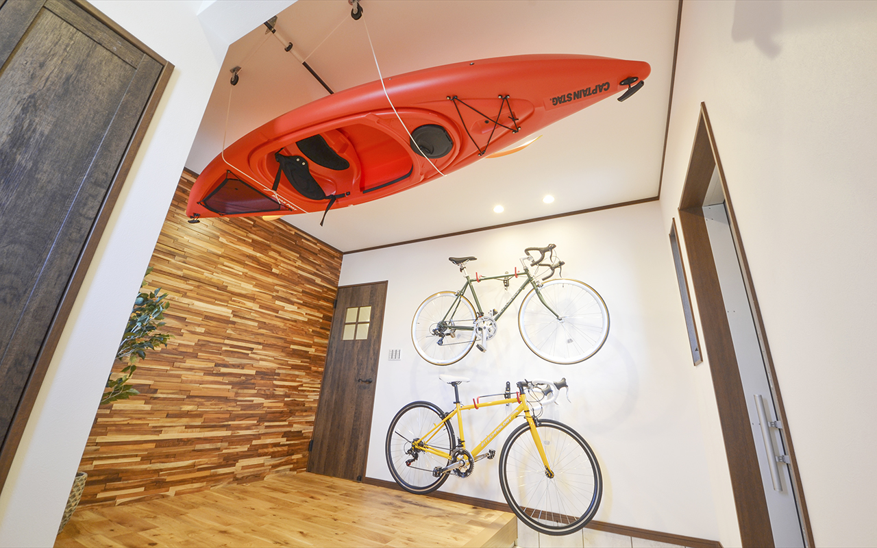 趣味のカヤックや自転車などアウトドア趣味を存分に楽しめるお家です。