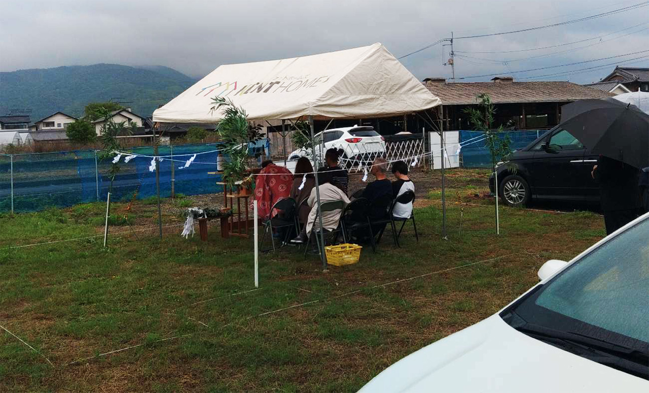 アットホームな雰囲気のなか土地の神様に工事のご報告と安全祈願をいたしました。
