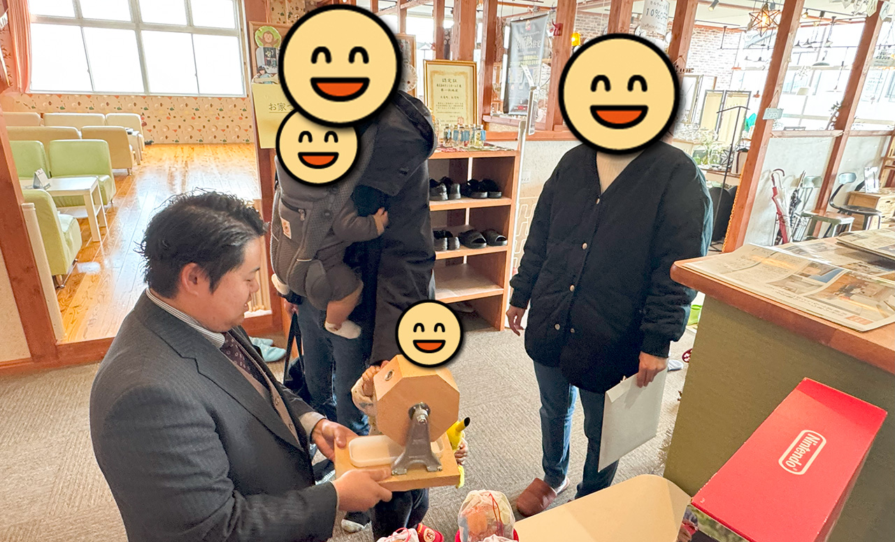 またイベントとして、ガラポン大会やお子様用のサンタの靴に入ったお菓子など、先着でのバームクーヘンやバターカステラ、シガールのお菓子プレゼントやイチゴのプレゼントなど…、ご来店いただいたお子様もとても嬉しそうでした!