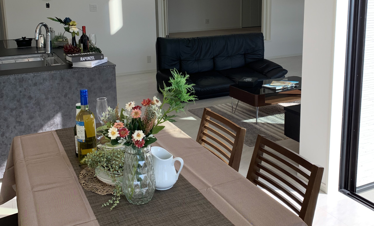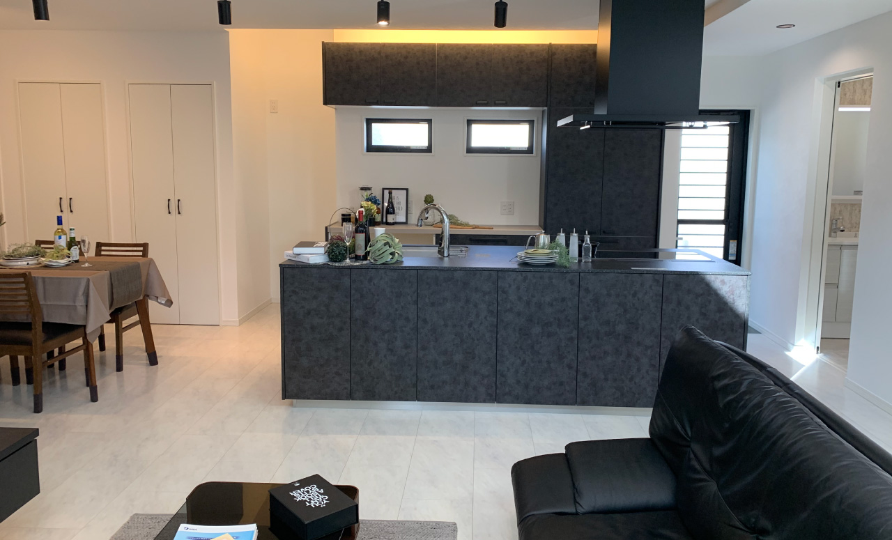 今回のお家はスタイリッシュな外観に内装は大理石調の床を採用し、