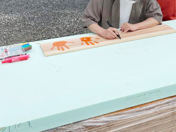 ご夫婦で梁に手形を押し、家内安全を祈願しました。