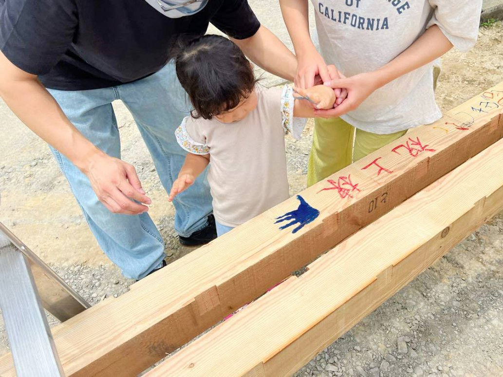 ご家族で梁に手形や足形を押し、家内安全を祈願しました。