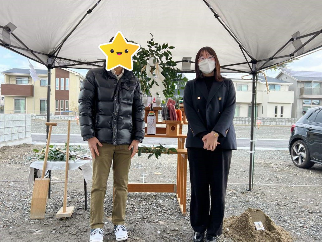 担当営業も駆けつけ、アットホームな雰囲気のなか土地の神様に工事のご報告と安全祈願をいたしました。