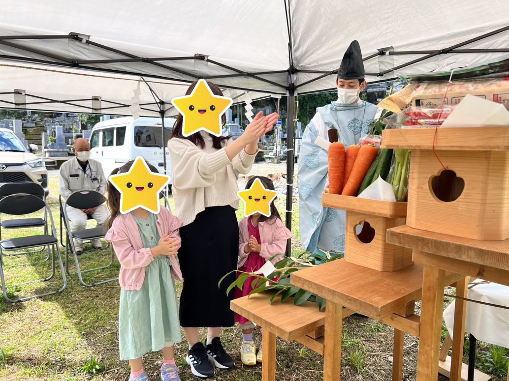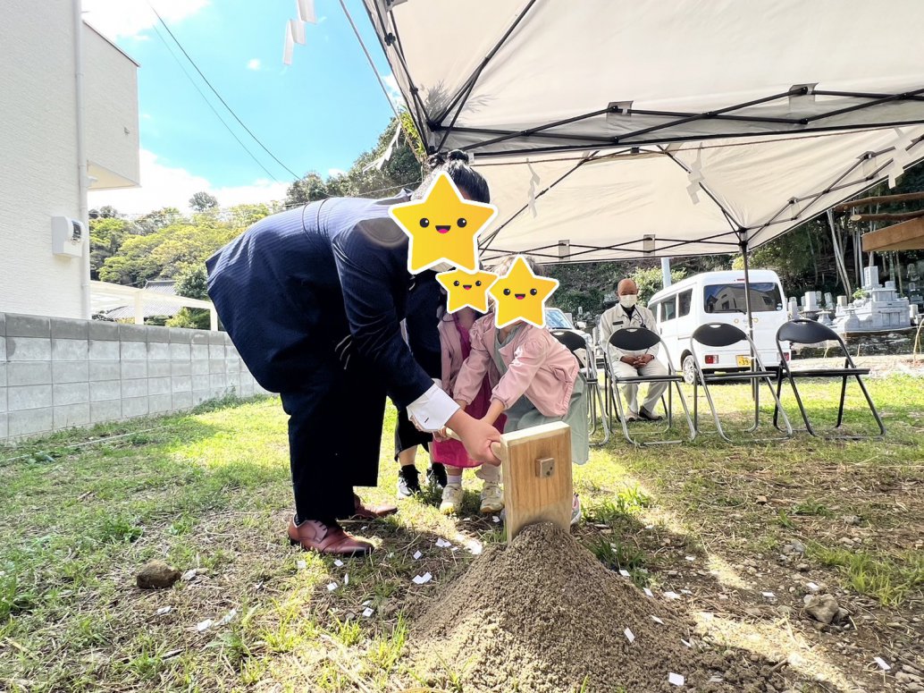 担当営業も駆けつけ、アットホームな雰囲気のなか土地の神様に工事のご報告と安全祈願をいたしました。